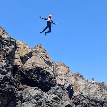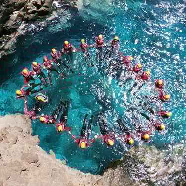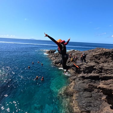 Odkryj oszałamiające wybrzeże Madery podczas przygody z coasteeringiem. Skacz z klifów, nurkuj w krystalicznie czystych wodach, pływaj w morskich jaskiniach i wspinaj się po skałach, całoroczna aktywność, wody o temperaturze 20ºC.